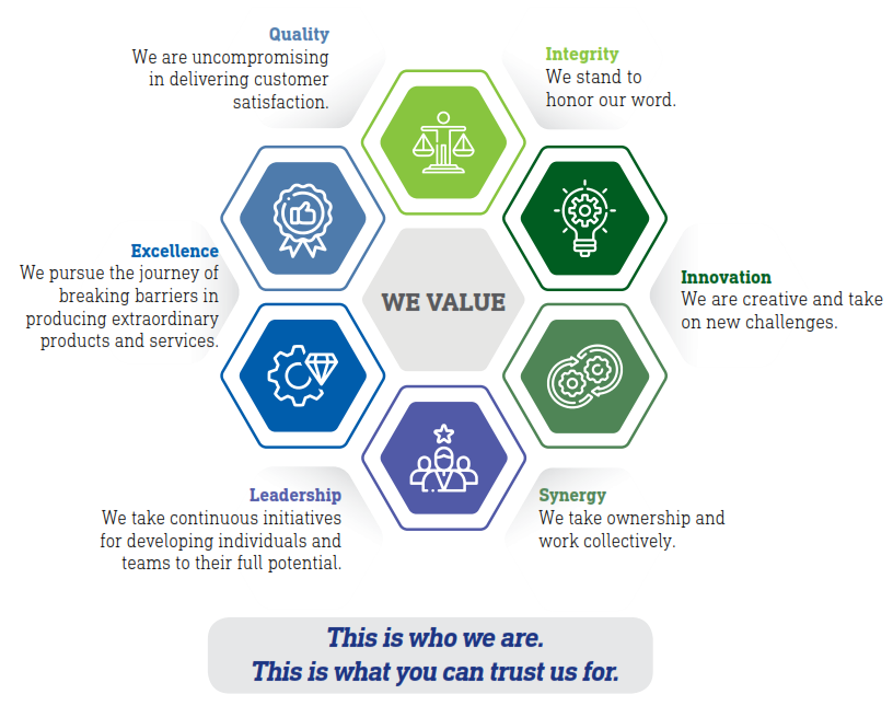Excellence: We pursue the journey of breaking barriers in producing extraordinary products and services.